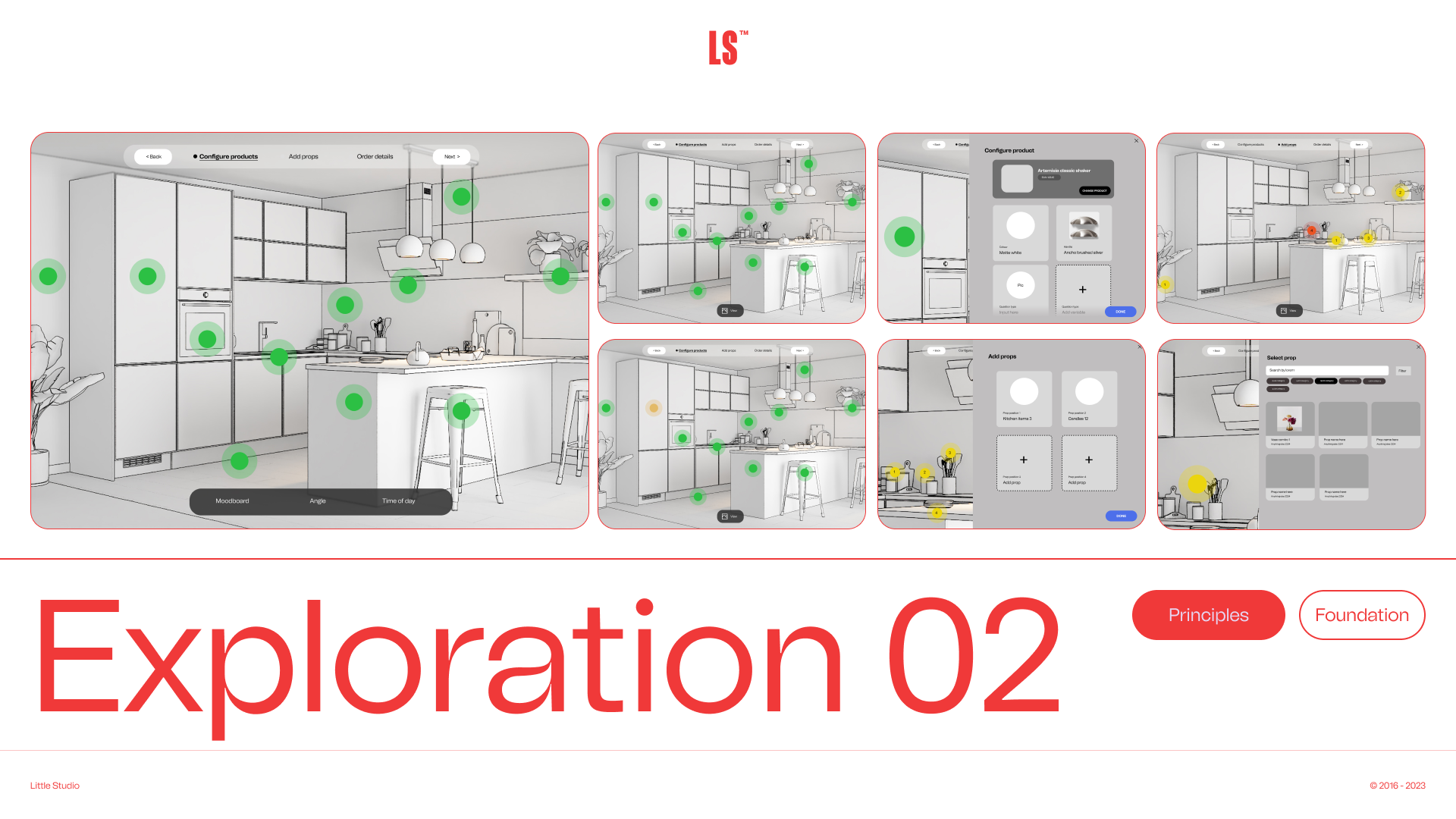 Remove guesswork: Interaction patterns featuring hotspots and modals that allows users to drill down into detail on a product or stay at a high level and keeps track of what they’ve changed