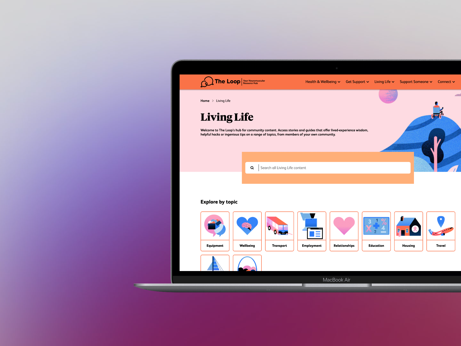 Muscular Dystrophy Foundation Australia set out to create an online resource that would act as an online companion - helping to connect the community with one another as well as practical, trustworthy information. Through a human-centred design process featuring multiple rounds of co-design, we created The Loop: an empathetic and community-reflective experience that connects people loving and living with NMCs access to carefully-paced, practical medical information and user generated lifestyle content and stories.