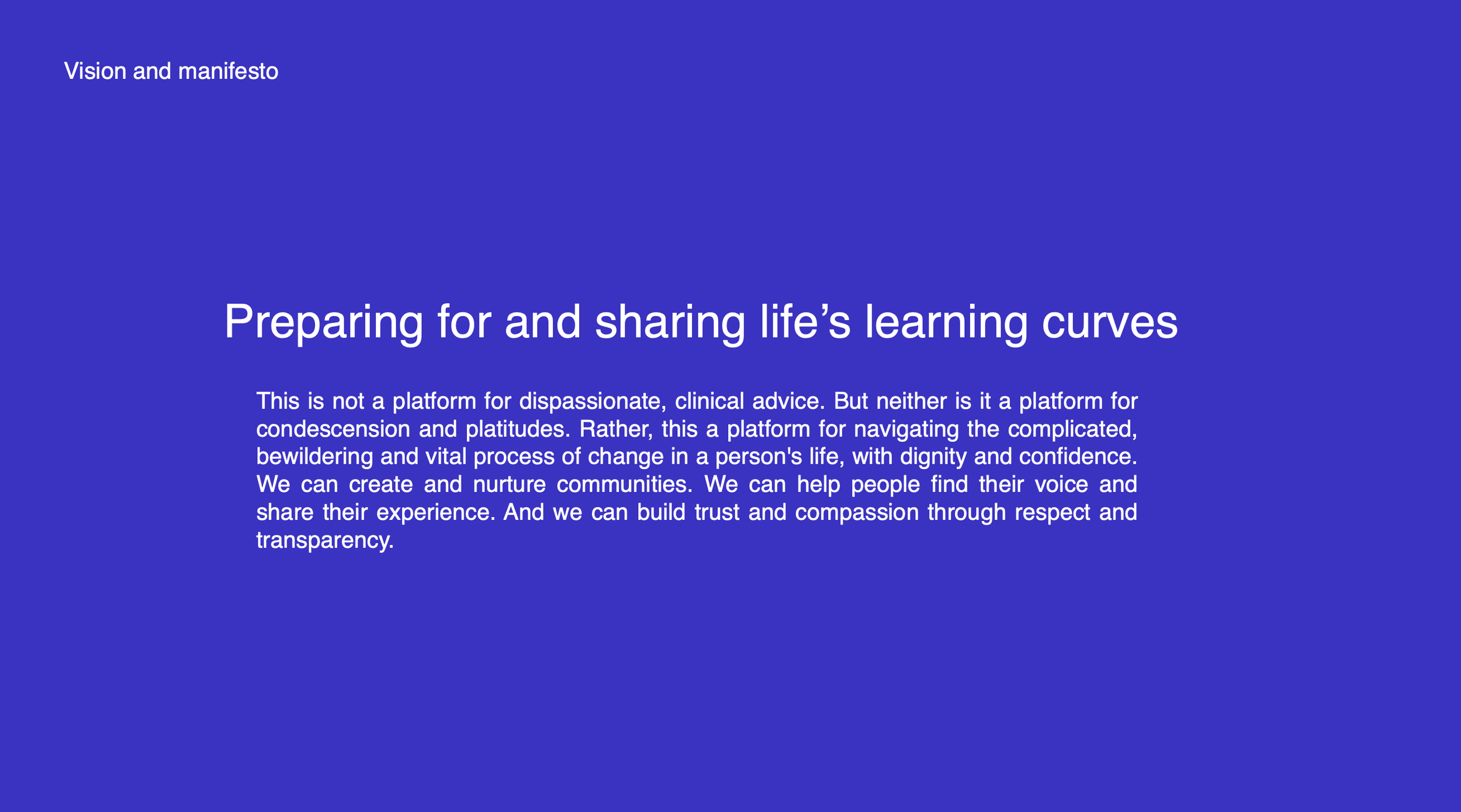 1) Medical yet empathetic condition based content that can be customised and used as a tool to communicate care needs to their support network
